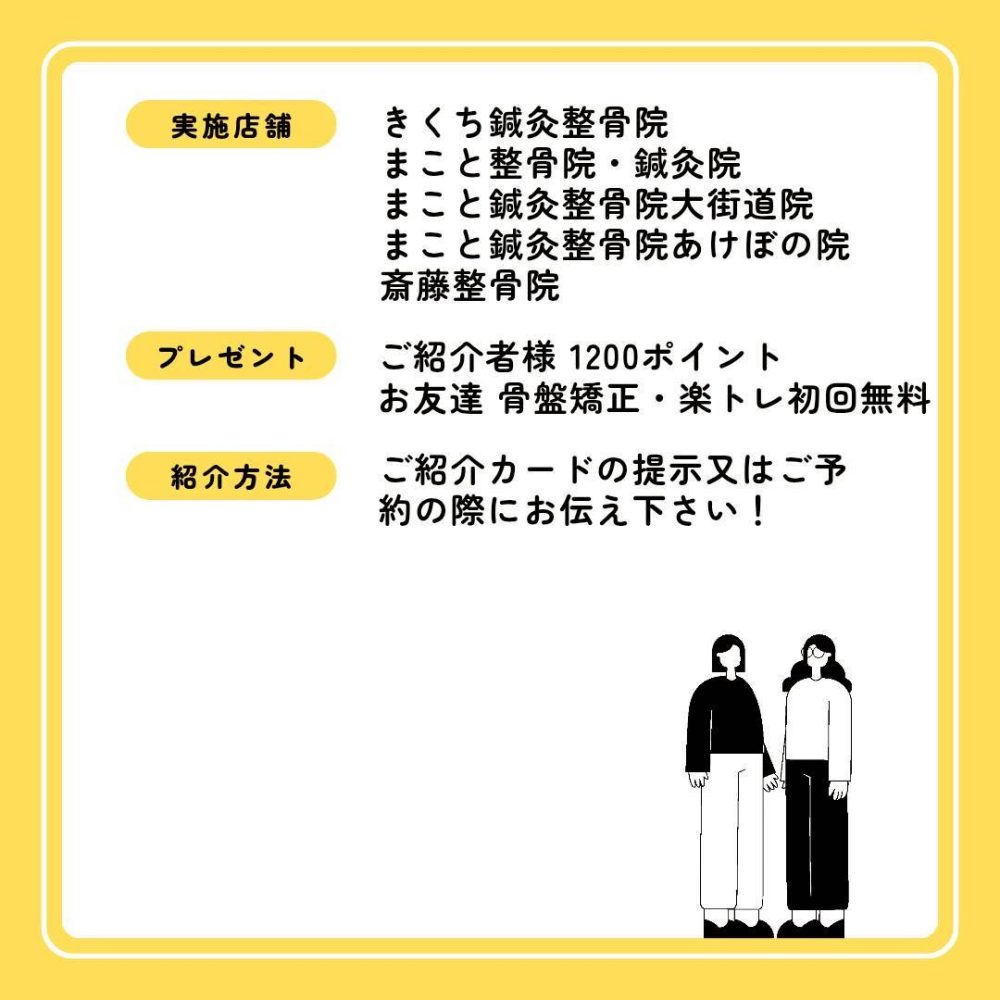 ご自身の身体を労わるきっかけ、大切な方に健康をプレゼントするきっかけに、ぜひ当院の紹介特典をご利用下さい💁♀️