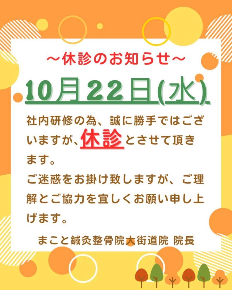 社内研修の為、誠に勝手ではございますが『休診』とさせて頂きます。