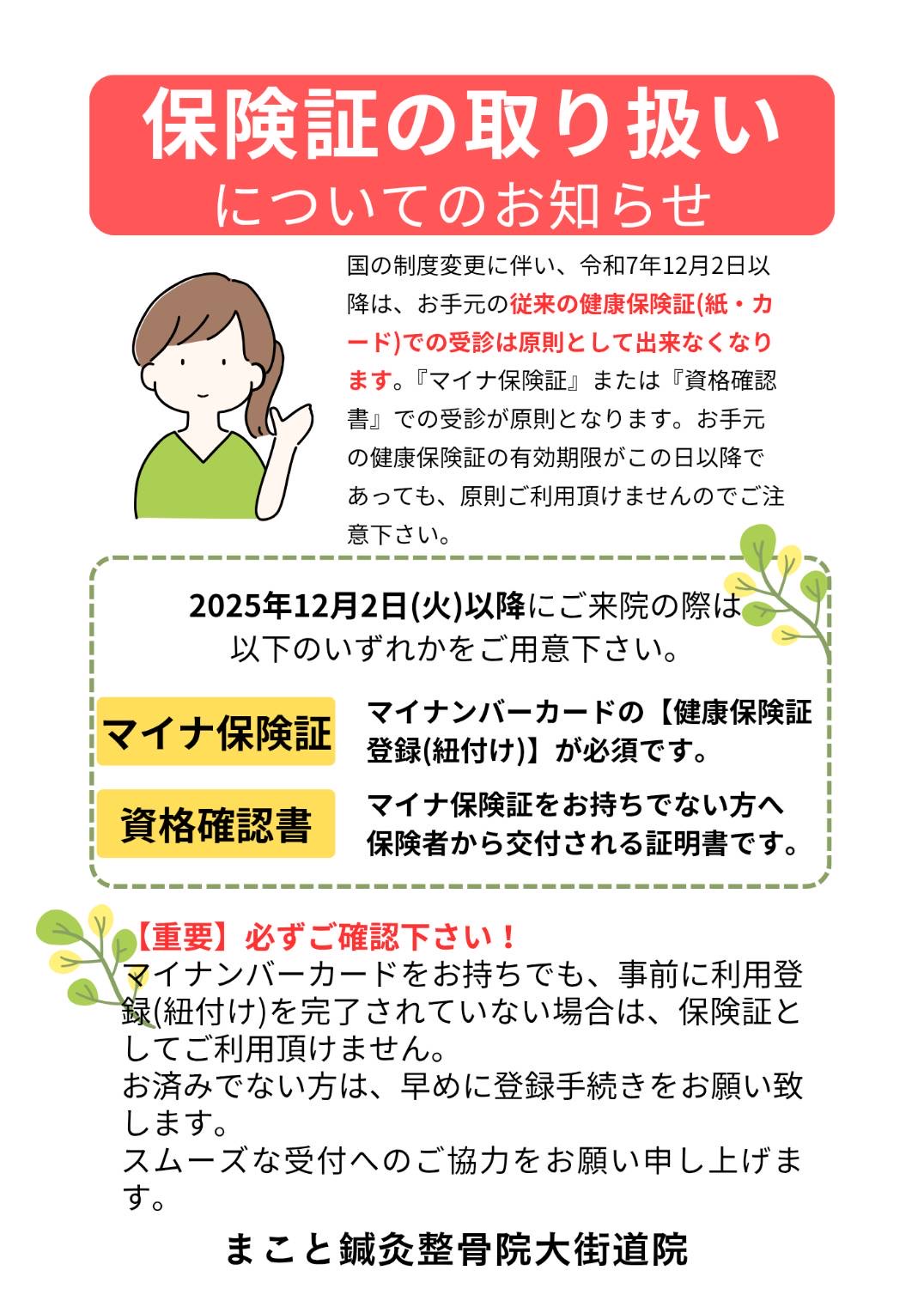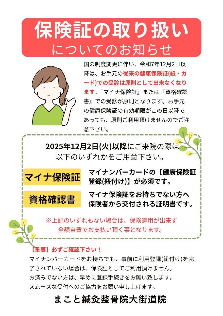 【重要】令和7年12月2日からの保険証の取り扱いと受診について
