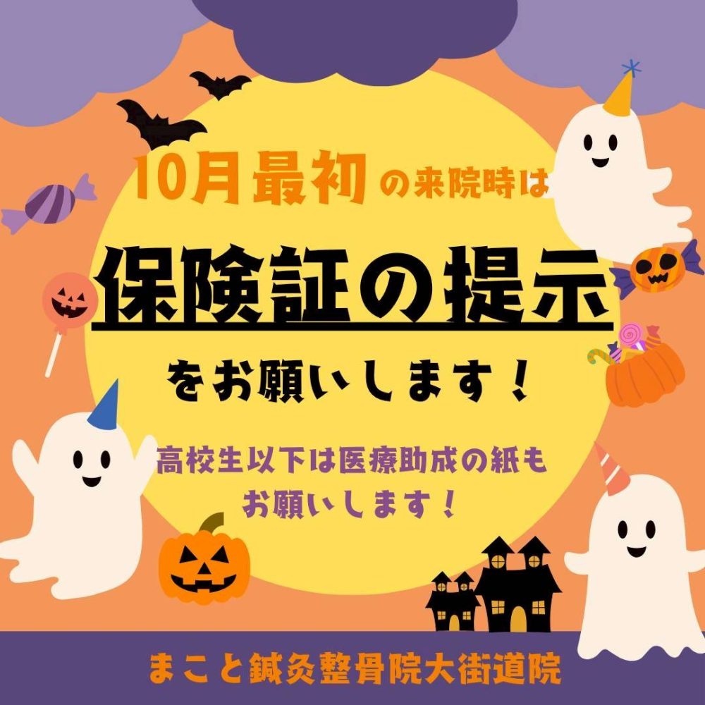 10月最初の来院時は【 保険証の提示 】が必要になります。 高校生以下は【 医療助成の紙 】もお願いします。